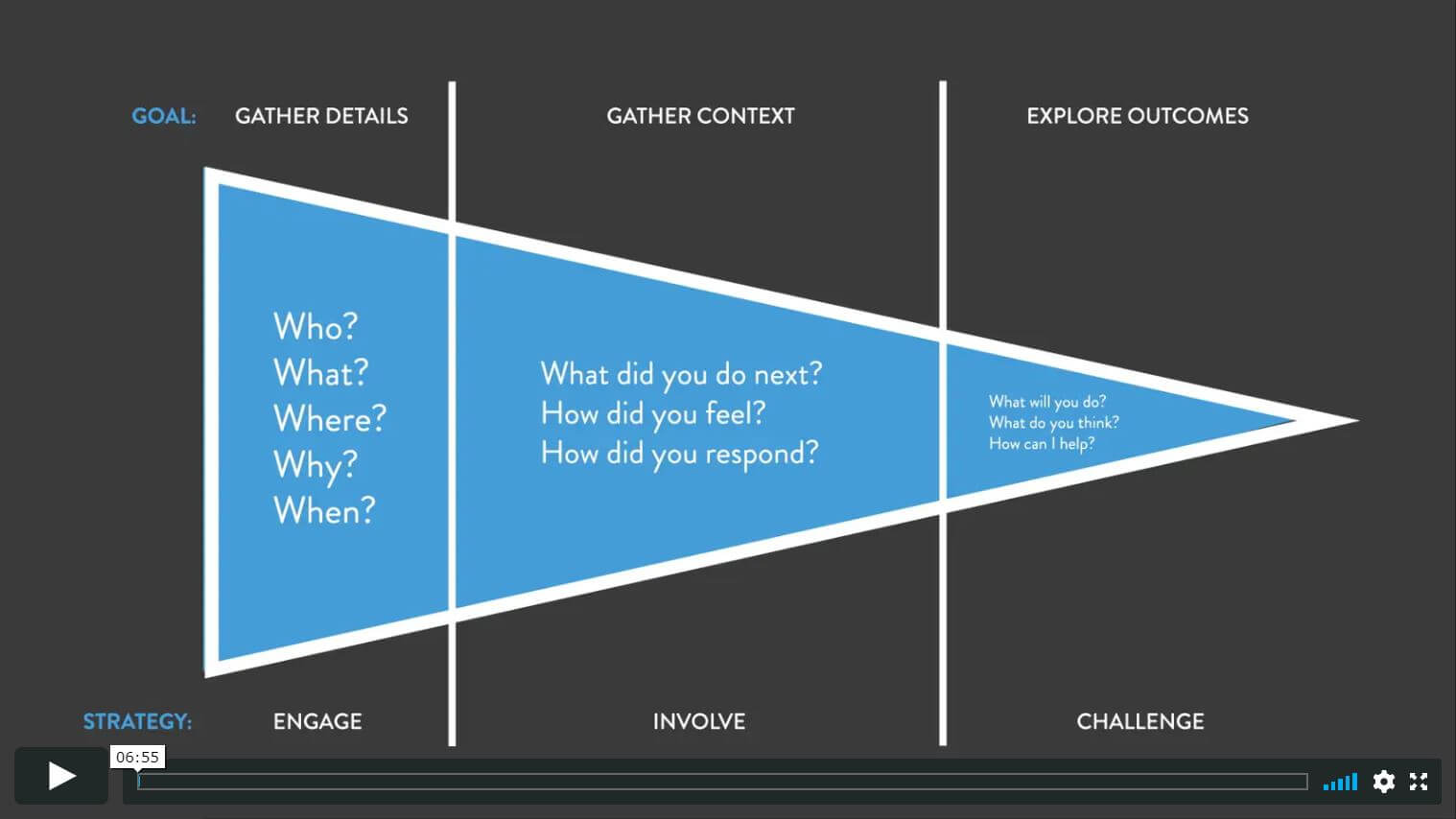 - Use open ended questions. Start your questions with: who, what, where, when, why, or how: “What was that like? How did that feel?”